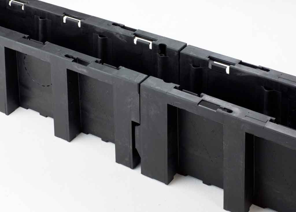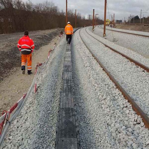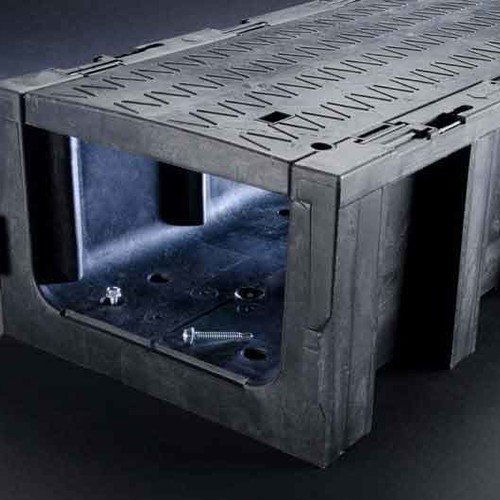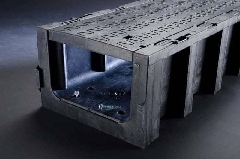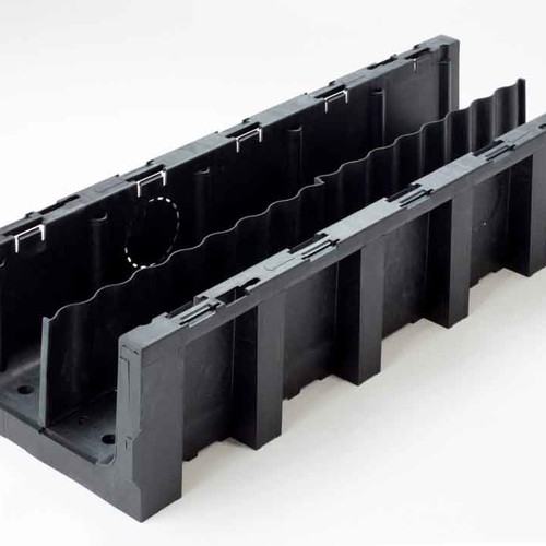La mise en œuvre de plastique léger offre de nombreux avantages qui vont des coûts de transport réduits jusqu’à la mise en place aisée (sans équipement de transport et de levage) et à de nouvelles applications possibles. Les empreintes défonçables pour la sortie des câbles accélèrent la pose. Les pans droits de la goulotte empêchent la formation de creux lors du remblaiement et favorisent ainsi le drainage transversal.
